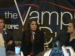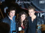 The cast of Vampire Diaries recently went on a cast tour sponsored by Hot Topic to promote the now extended season of the new show. Damon (Ian Somerhalder), Stephen ( Paul Wesley) and Elena (Nina Dobrev) were all present at the signing and Q and A. The signing began at three in the afternoon but people were lined up before noon, I happened to be one of them in a group including my girlfriend, her sister , our two friends, my cousin and her friends. We were lined up in the hallways behind the stores and periodically checked for our irreplaceable paper bracelets. It must have been at least ninety degrees in this hallway and after four hours a lot of us began to get cabin fever. After the long wait we were counted and escorted to Hot Topic where the signing was taking place. Upon walking into the door we had one security guard cutting off our bracelets so we couldn’t re-enter and then another telling us the ground rules as he led us to a small line. No pictures, videos, gifts, no touching, no leaning over the table, you would think we were meeting the president.